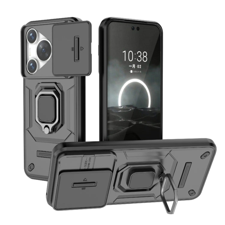Funda para Huawei P70 5G Sliding Camshield TPU + PC a Prueba de Golpes con Soporte (Negro)