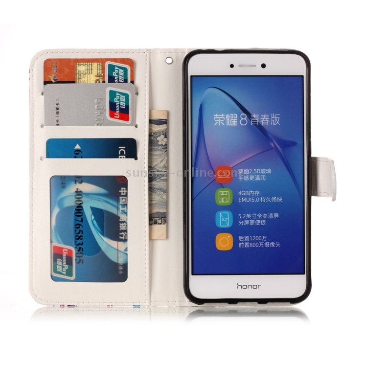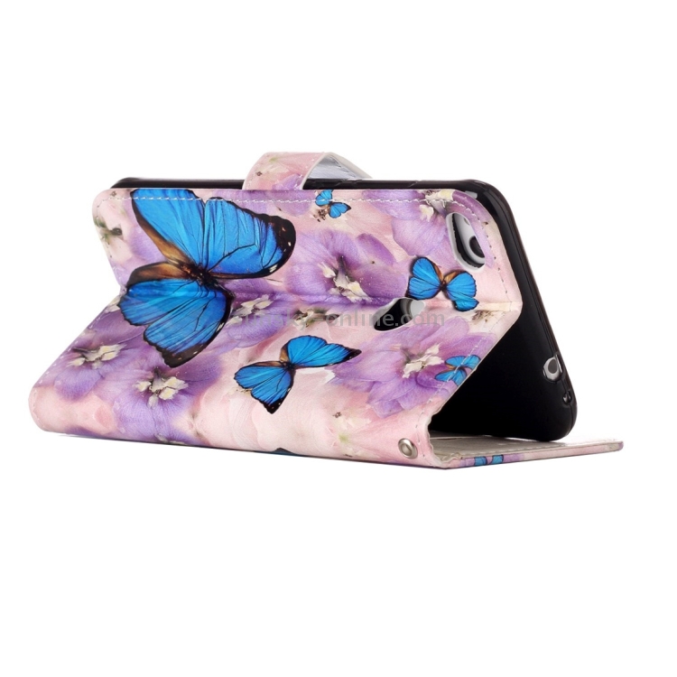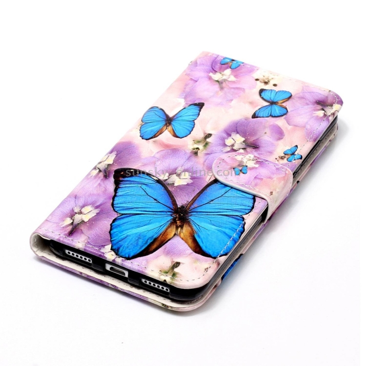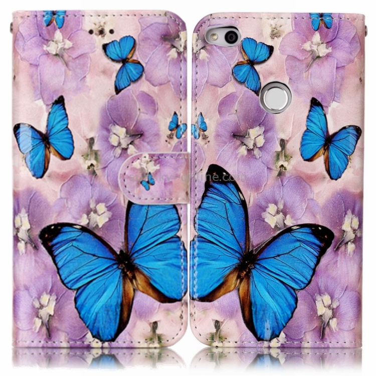Funda de Cuero para Huawei P8 Lite (2017) con Tapa Horizontal, Mariposa Morada, Soporte, Ranuras y Marco de Fotos