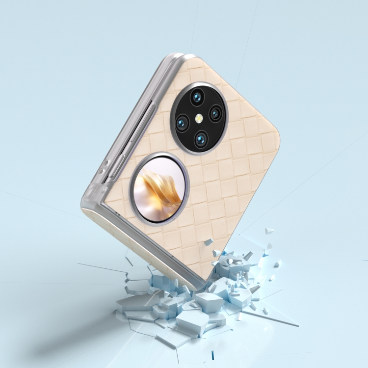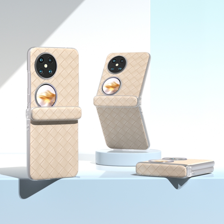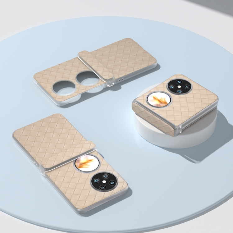 Funda 3 en 1 para Huawei Pocket 2 de PU con Marco Translúcido Esmerilado y Textura Tejida (Beige)