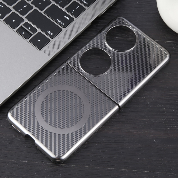 Caja para Huawei Pocket 2 6D PC Magsafe Transparente con Fibra de Carbono (Gris Titanio)