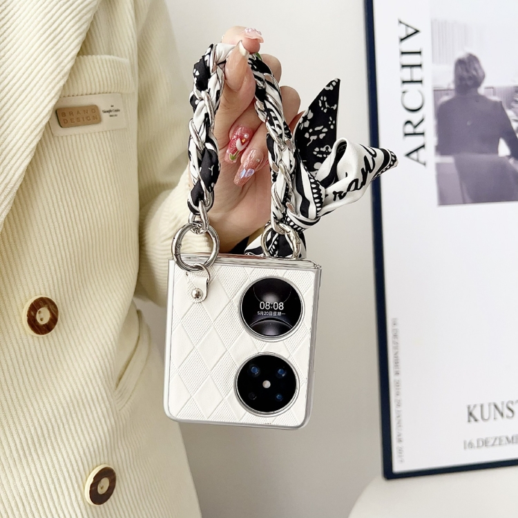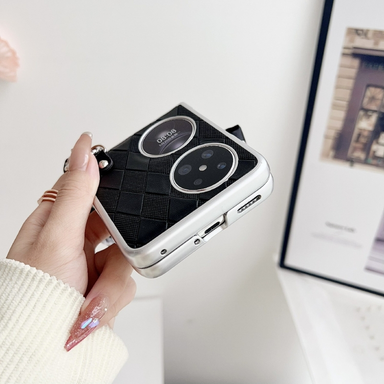 Funda para Huawei Pocket 2 con Textura de Cuero Rombo, Bufanda y Pulsera en Forma de Corazón, a Prueba de Golpes (Negro)