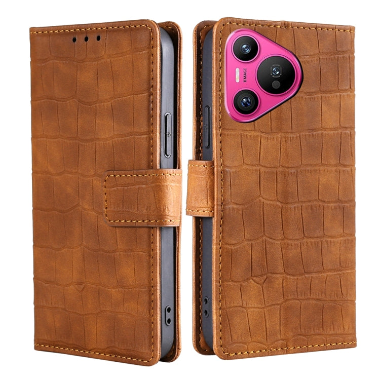 Funda para Huawei Pura 70 5G de Cuero con Cierre Magnético y Piel de Cocodrilo (Marrón)