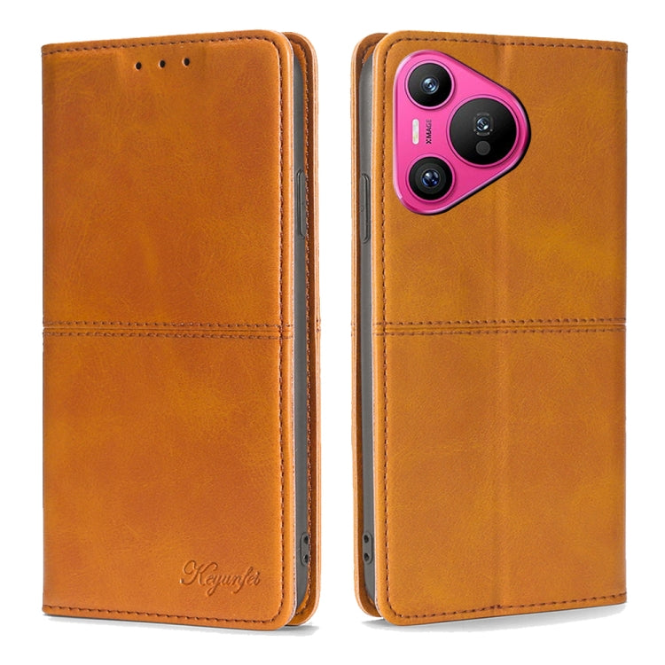 Funda para Huawei Pura 70 5G de Cuero Magnético con Textura de Vaca (Marrón Claro)