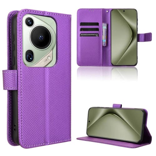 Funda de Cuero para Huawei Pura 70 con Textura de Diamante Ultra (Púrpura)
