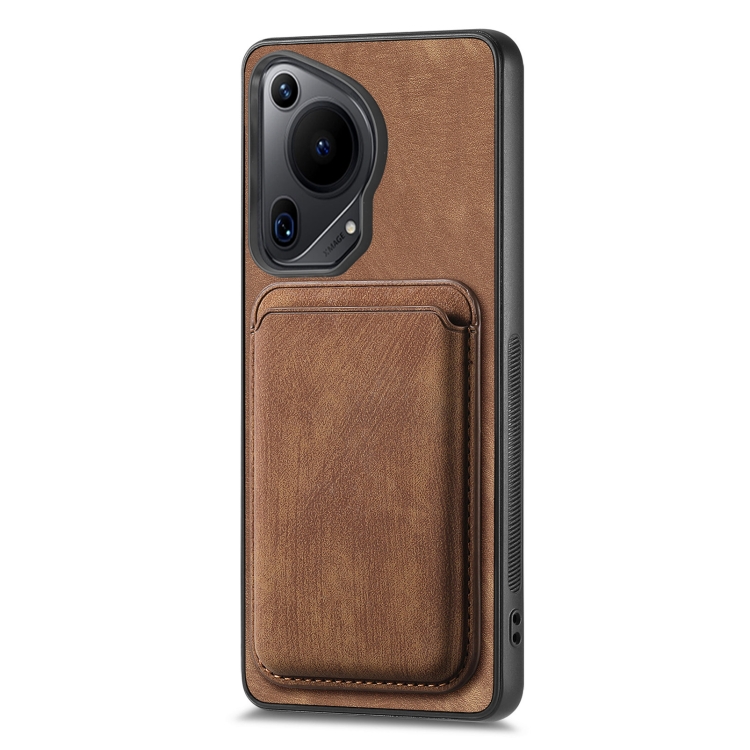 Funda de Teléfono Magnética Huawei Pura 70 con Bolsa de Tarjeta de Cuero Ultra Retro (Marrón)
