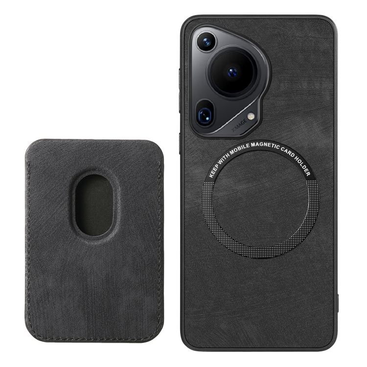 - 1x Funda Magnética para Huawei Pura 70 con Bolsa de Tarjeta de Cuero Ultra Retro (Negro)