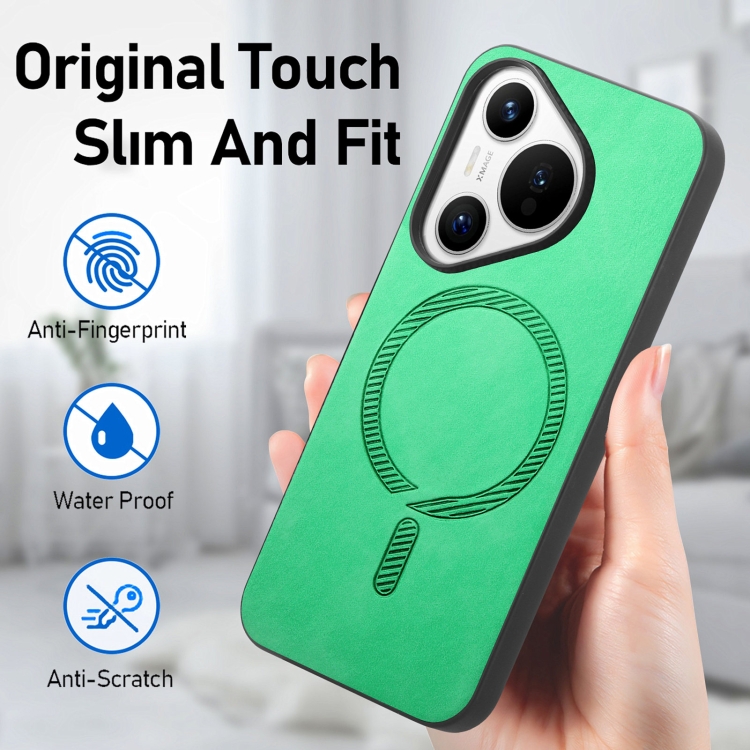 Funda para Huawei Pura 70 con Contraportada de PU Magsafe Retro (Verde)