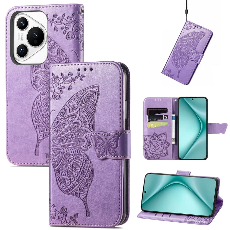 Funda para Huawei Pura 70 de Cuero con Relieve Flor de Amor y Mariposa (Lavanda)