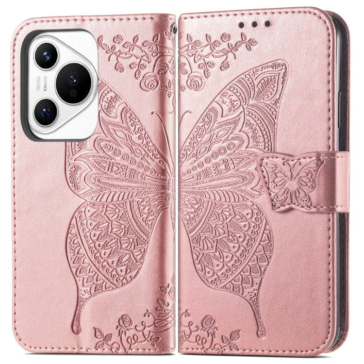 Funda para Huawei Pura 70 de Cuero con Relieve Flor de Amor y Mariposa (Oro Rosa)