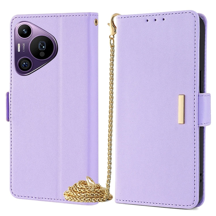 Funda de Cuero para Huawei Pura 70 Pro y 70 Pro + 5G con Cadena Cruzada (Púrpura)