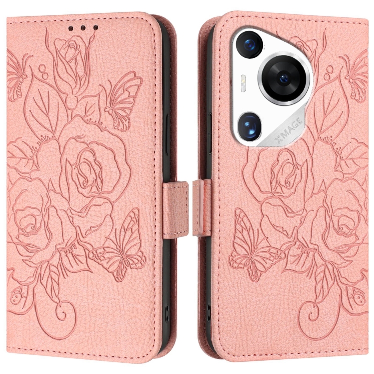 - 1x Funda de Cuero Antirrobo RFID para Huawei Pura 70 Pro con Relieve (Rosa)