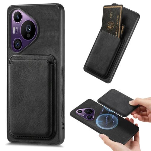 - 1x Funda para Huawei Pura 70 Pro Magnética con Bolsa de Tarjeta de Cuero Retro (Negro)