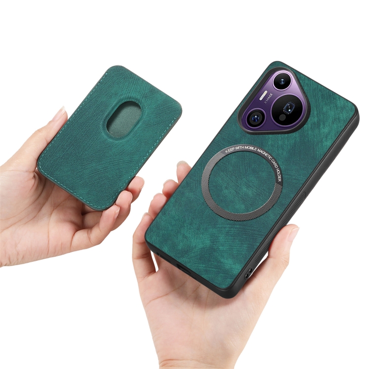- 1x Funda para Huawei Pura 70 Pro Magnética con Bolsa de Tarjeta de Cuero Retro (Verde)