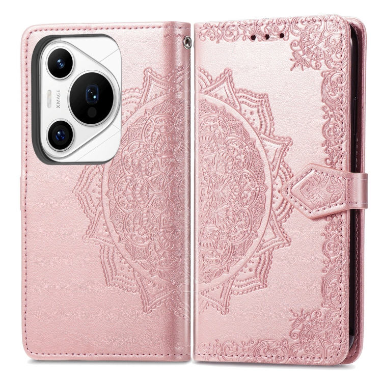 Funda para Huawei Pura 70 Pro Cuero con Relieve Flores Mandala (Oro Rosa)
