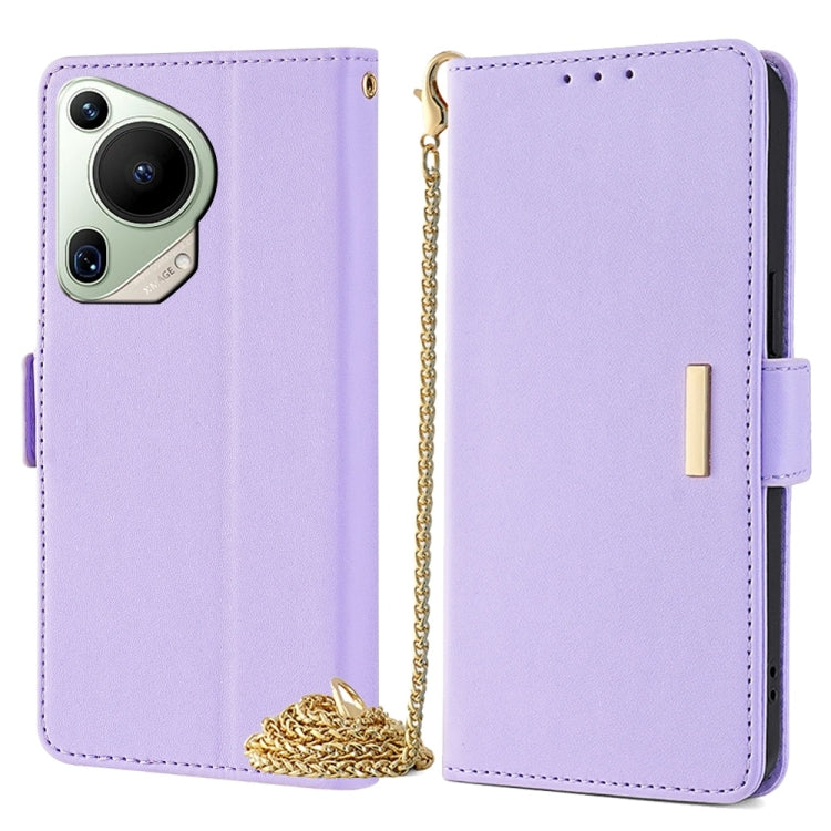 Funda de Cuero con Cadena Cruzada para Huawei Pura 70 Ultra 5G (Púrpura)