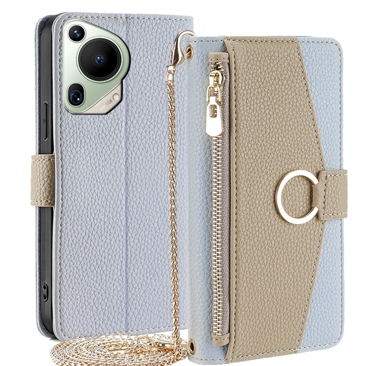 Funda para Huawei Pura 70 Ultra 5G de Cuero con Textura Litchi Cruzada (Azul)