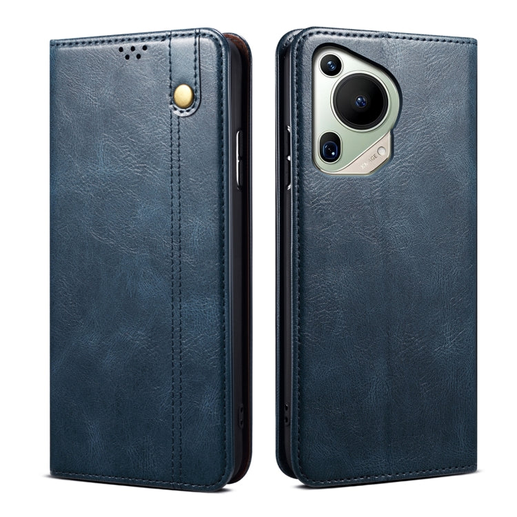 Funda de Cuero Huawei Pura 70 Ultra Oil Wax Crazy Horse Texture para Teléfono (Azul)