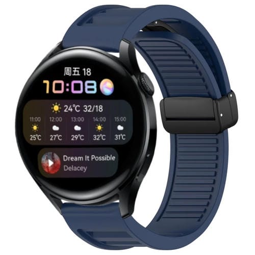 Correa de Silicona para Huawei Watch 3 con Hebilla Magnética Plegable de 22mm (Azul Medianoche)