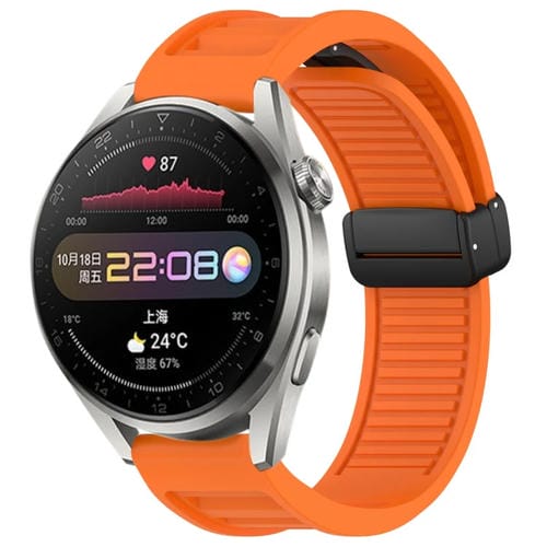 Correa de Silicona para Huawei Watch 3 Pro con Hebilla Magnética Plegable 22mm (Naranja)