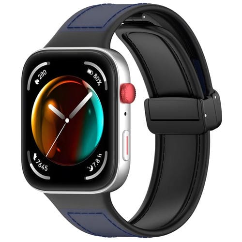 Correa de Silicona y Cuero para Huawei Watch Fit 3 con Hebilla Plegable (Azul Oscuro)