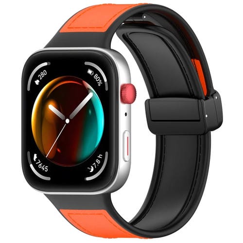 Correa de Reloj para Huawei Watch Fit 3 de Silicona y Cuero con Hebilla Plegable (Naranja)