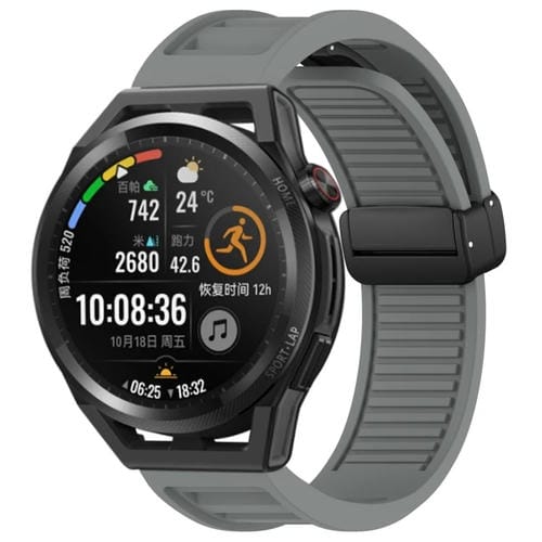Correa de Silicona para Huawei Watch GT Runner con Hebilla Magnética Plegable de 22mm (Gris)