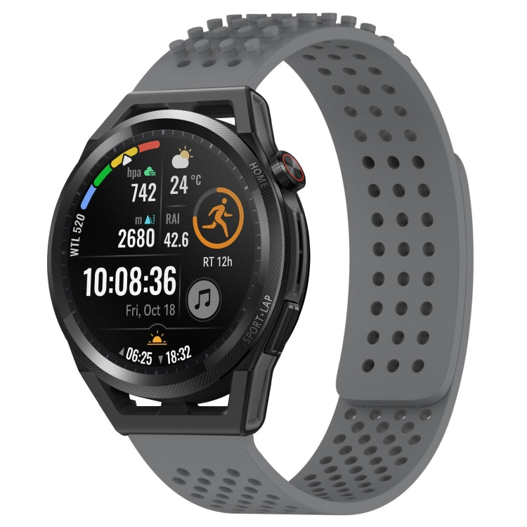 Correa de Silicona para Huawei Watch GT Runner con Puntos 3D Transpirables y Orificios 22mm (Gris)