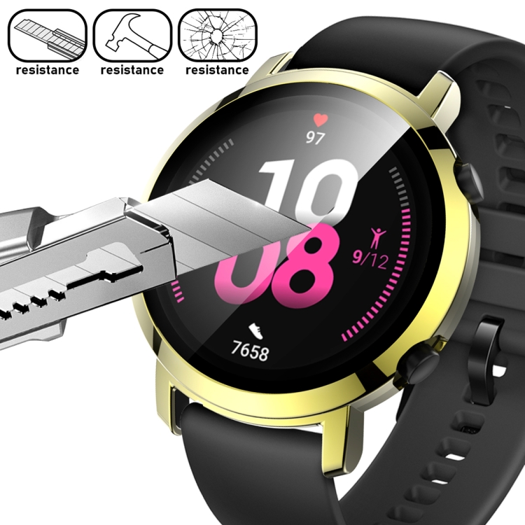Protector Pantalla Vidrio Templado + Estuche Pc para Huawei Watch GT2 42mm (Dorado)