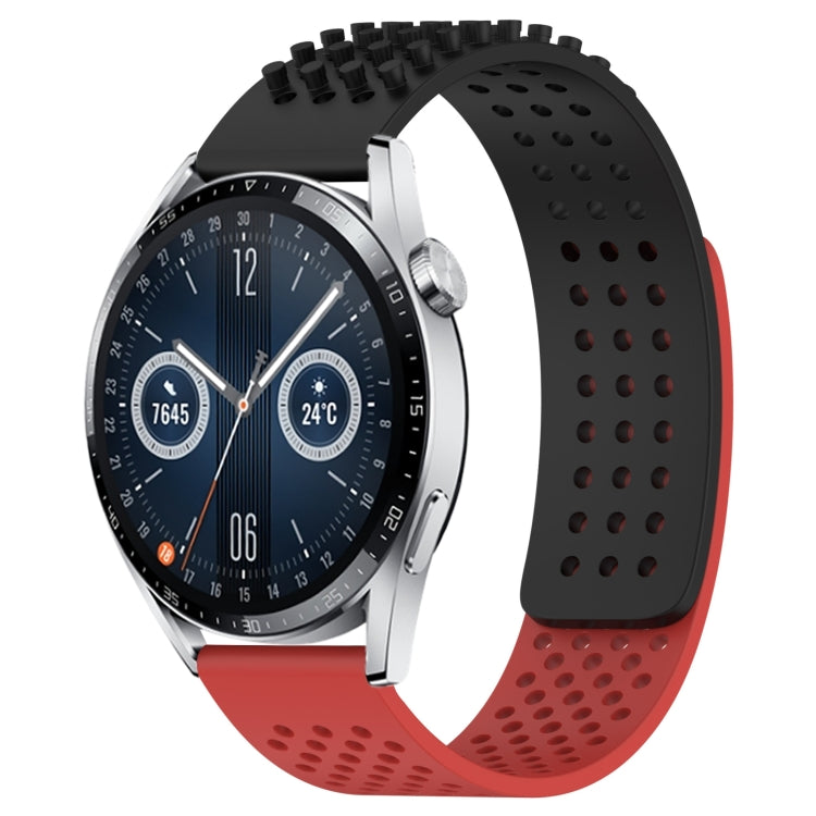 Correa de Silicona para Huawei Watch GT3 46mm 22mm Agujeros Transpirable Puntos 3D (Negro + Rojo)