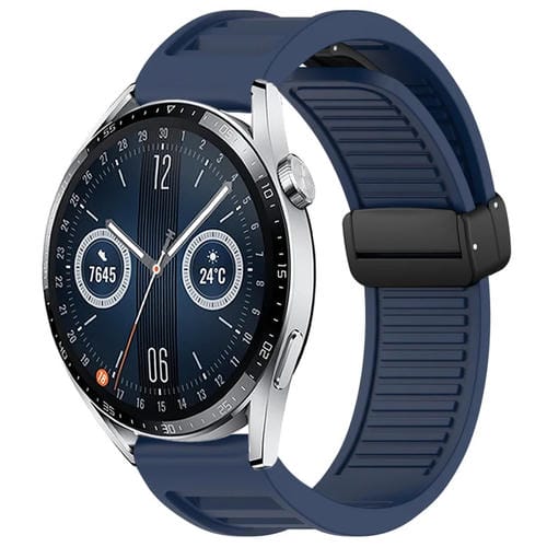Correa de Silicona para Huawei Watch GT3 46mm 22mm con Hebilla Magnética Plegable (Azul Medianoche)