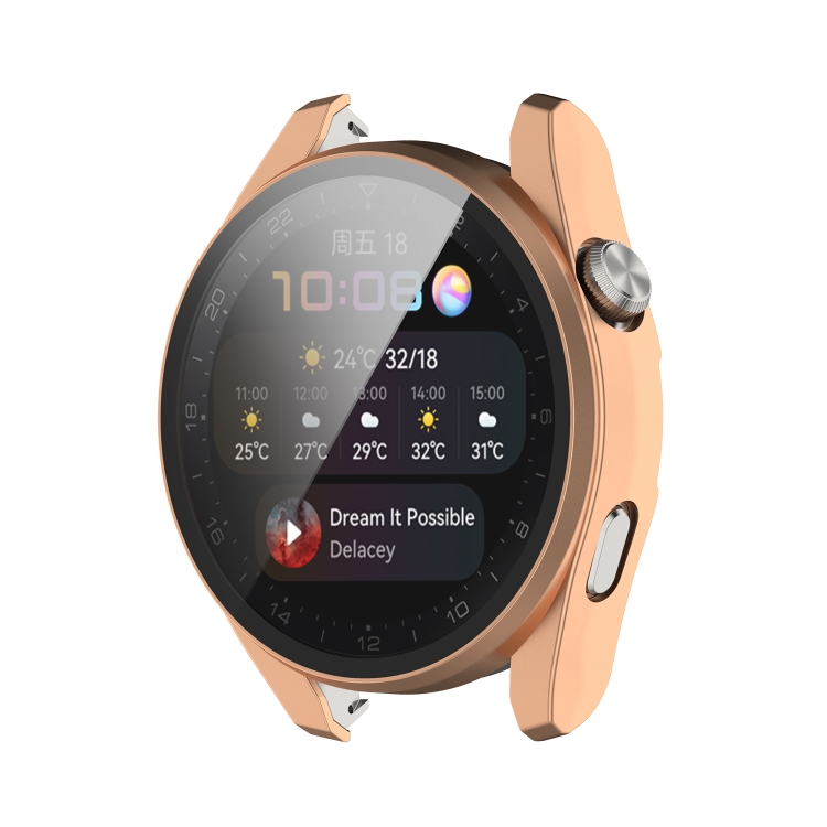 Caja Protectora para Huawei Watch3 Pro con Vidrio Templado Integrado (Oro Rosa)