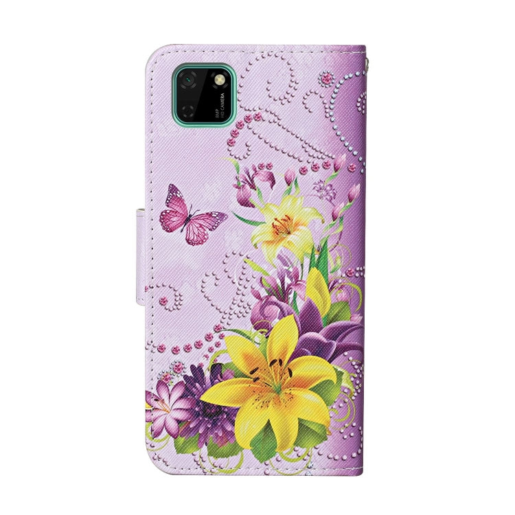 Funda de Cuero para Huawei Y5P con Tapa Horizontal, Soporte, Ranuras y Billetera (Mariposa de Flores Amarillas)