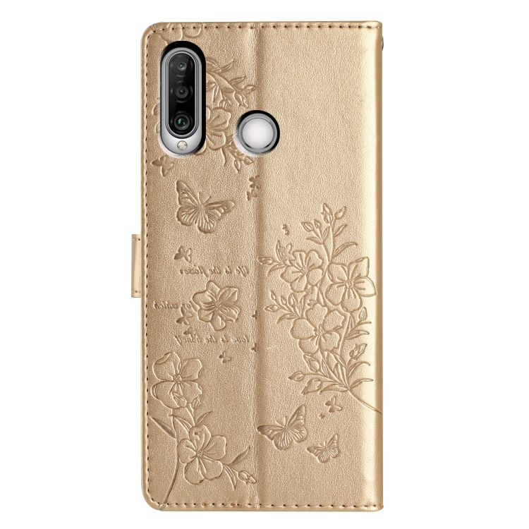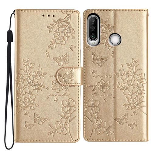 - 1x Funda de Cuero para Huawei Y6P Butterfly Love Flower en Relieve (Dorado)