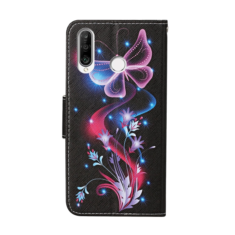 Funda de Cuero para Huawei Y6P con Tapa Horizontal, Soporte, Ranuras para Tarjetas y Billetera (Mariposa Fluorescente)