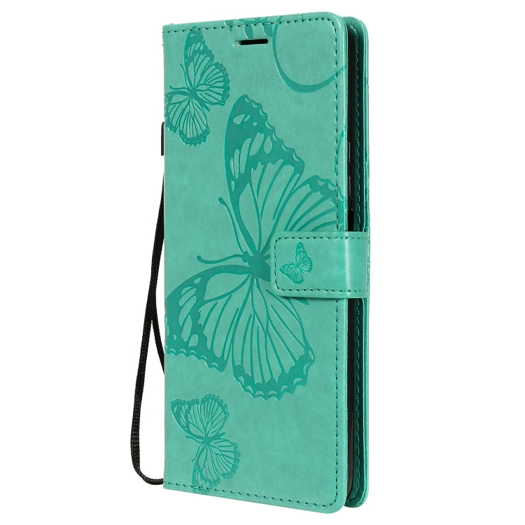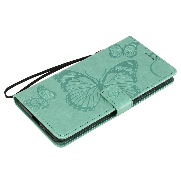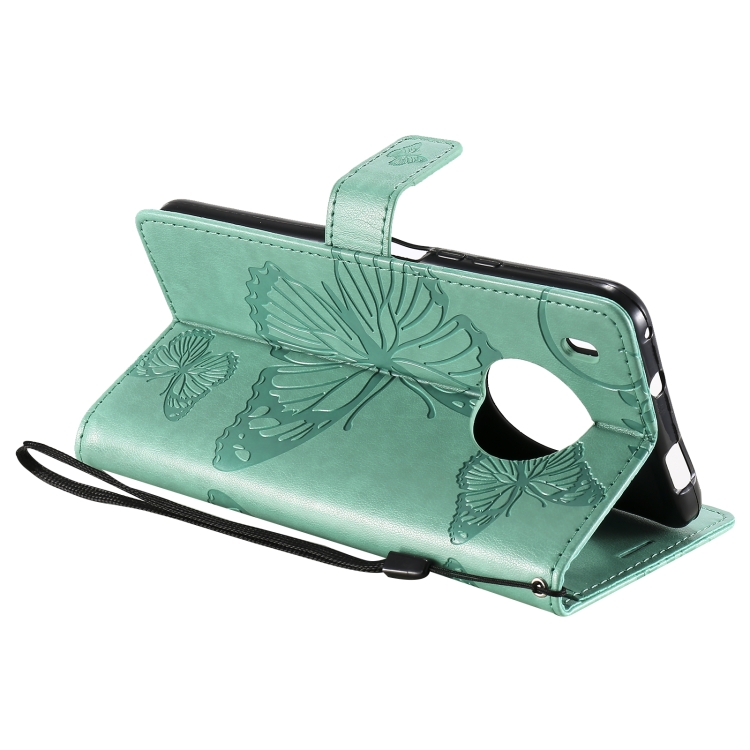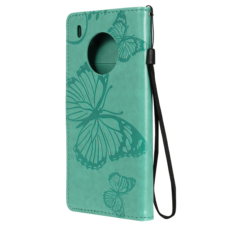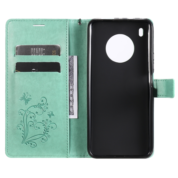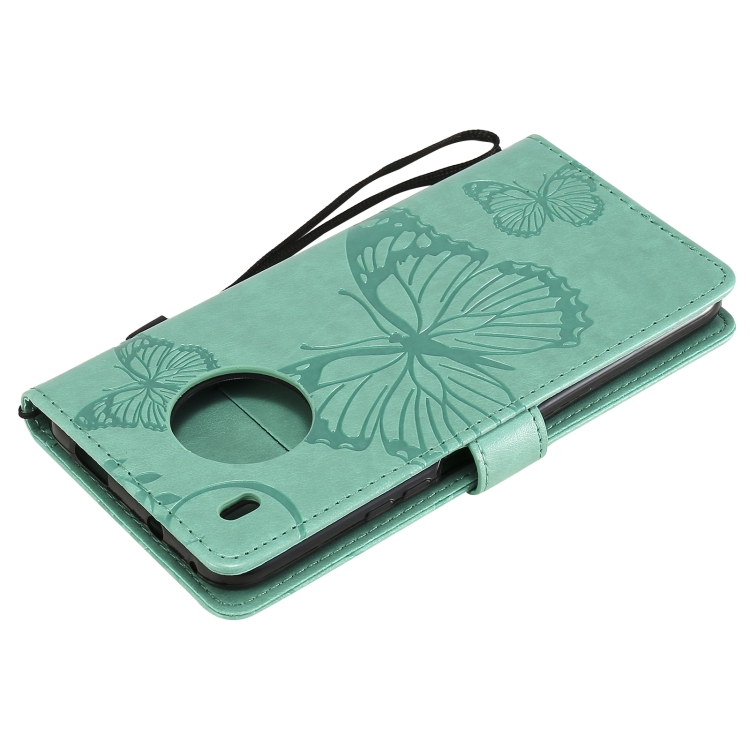 Para Huawei Y9a Patrón de estampado de mariposas 3D Funda de cuero con tapa horizontal con soporte, ranura para tarjeta y billetera (verde)