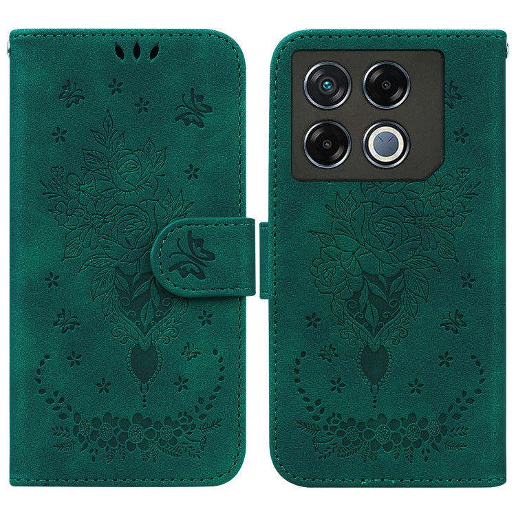 Funda de Cuero para Infinix GT 20 Pro Butterfly Rose en Relieve (Verde)