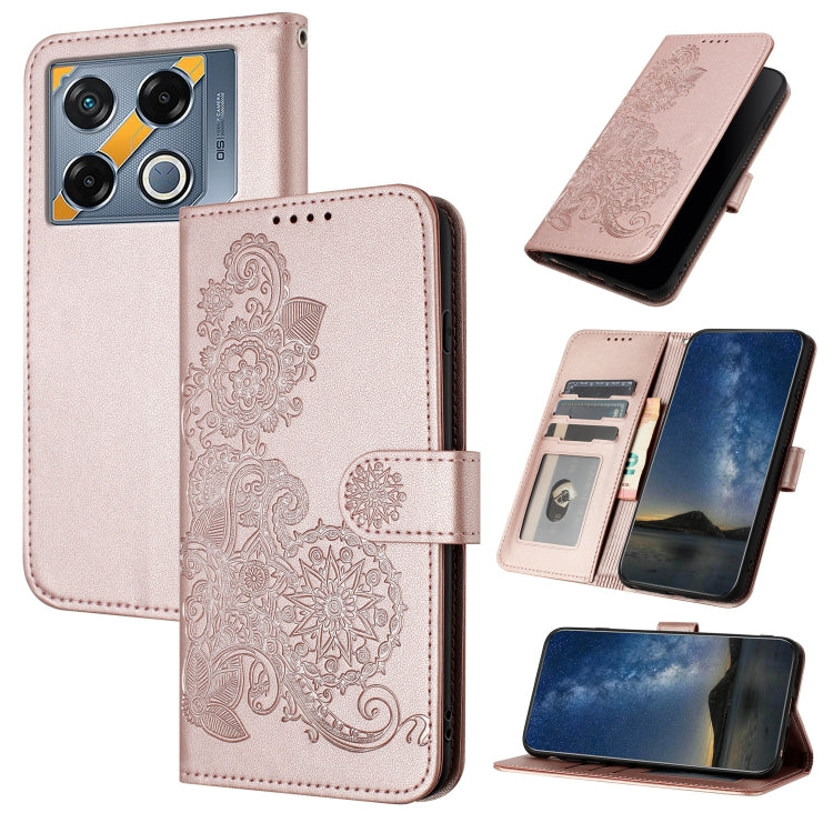 Funda de Cuero para Infinix GT 20 Pro Datura Flower con Tapa en Relieve (Oro Rosa)