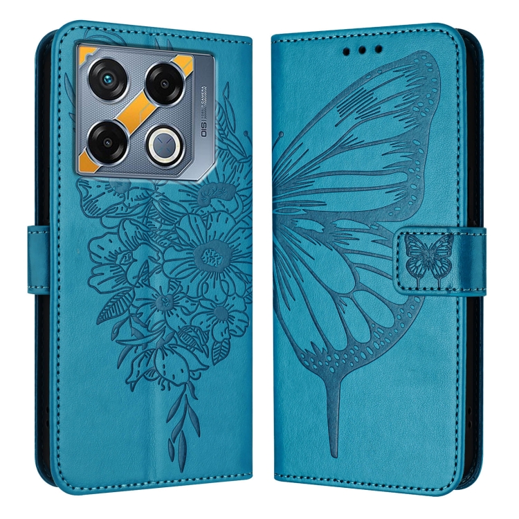 Funda de Cuero para Infinix GT 20 Pro con Mariposa en Relieve (Azul)