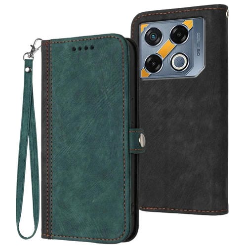 Funda de Cuero para Infinix Gt 20 Pro con Correa de Mano Doble Pliegue y Hebilla (Verde Oscuro)