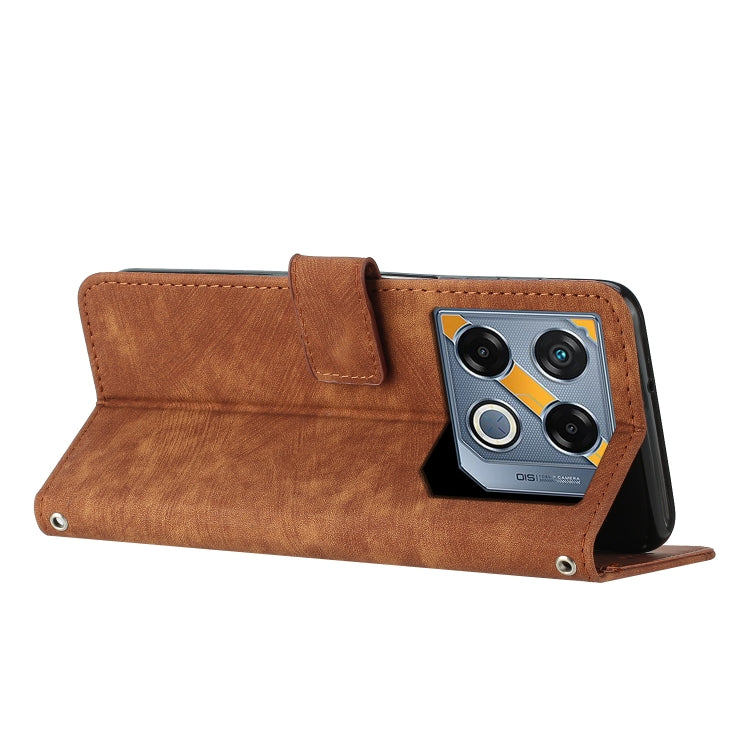 Funda de Cuero Skin Feel para Infinix GT 20 Pro con Patrón de Rayas y Cordón (Marrón)