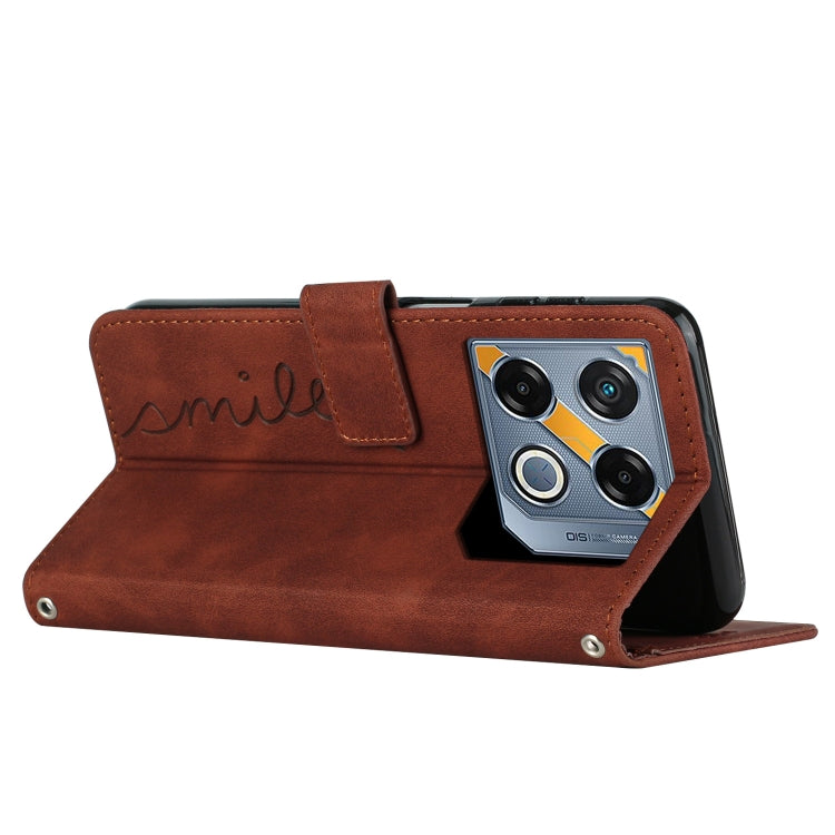 Funda de Cuero para Infinix GT 20 Pro Skin Feel Heart con Cordón Largo (Marrón)