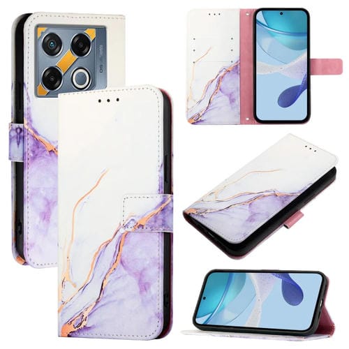 Funda de Cuero con Tapa para Infinix GT 20 Pro X6871 Pt003 con Patrón de Mármol (Blanco y Morado)