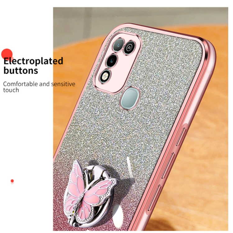Funda TPU para Infinix Hot 10 Play con Soporte de Mariposa y Brillo Degradado (Púrpura)