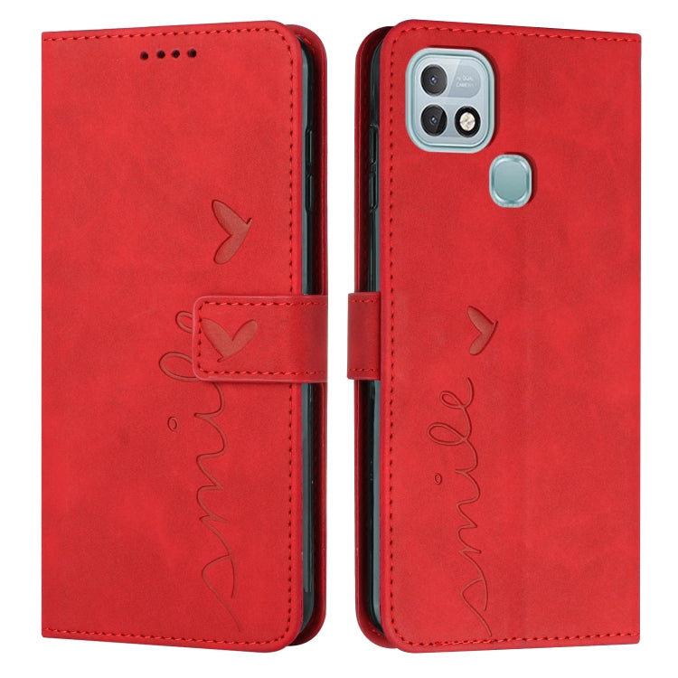 Funda para Infinix Hot 10I Skin Stent con Patrón Heart de Cuero (Rojo)