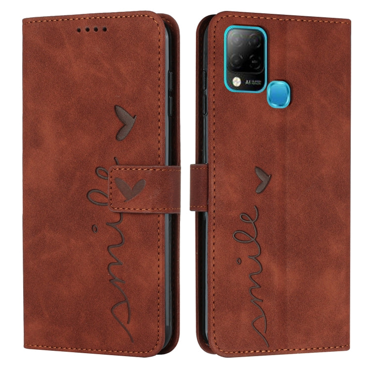 Funda para Infinix Hot 10S Skin Stent Patrón Heart de Cuero (Marrón)