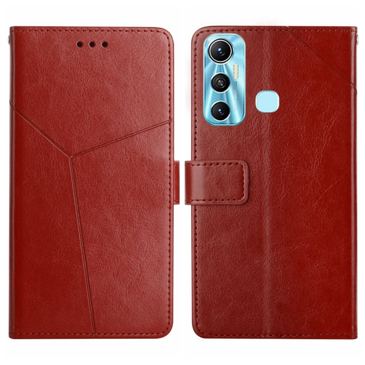Funda de Cuero para Infinix Hot 11 HT01 con Tapa y Patrón en Forma de Y (Marrón)