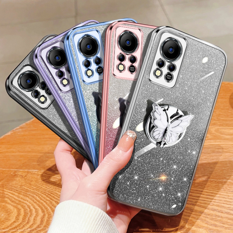 Funda TPU para Infinix Hot 11S con Soporte Mariposa y Brillo Degradado Chapado en NFC (Plata)