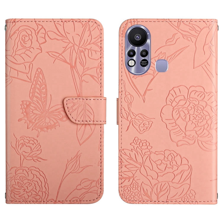 Funda de Cuero con Tapa En Relieve para Infinix Hot 11S Ht03 Skin Feel Butterfly (Rosa)