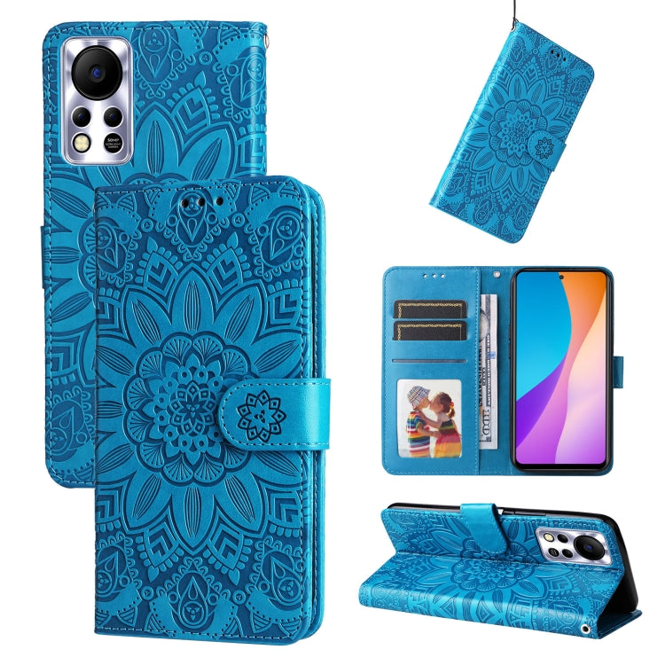 Estuche para Teléfono Infinix Hot 11S Nfc Cuero con Estampado de Girasol en Relieve (Azul)