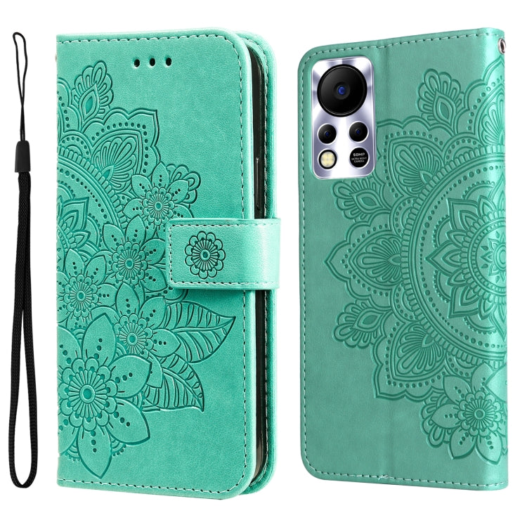 Funda Flip Leather para Infinix Hot 11S Nfc Flores de 7 Pétalas (Verde)
